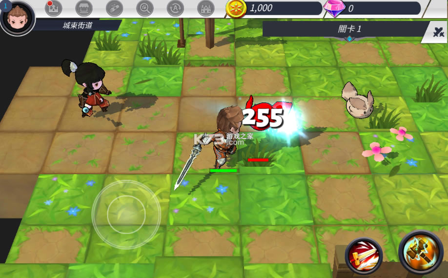 可主动操控角色,点击操控方向摇杆,调整角色前进路线,比如拾取道具,寻找宝箱。