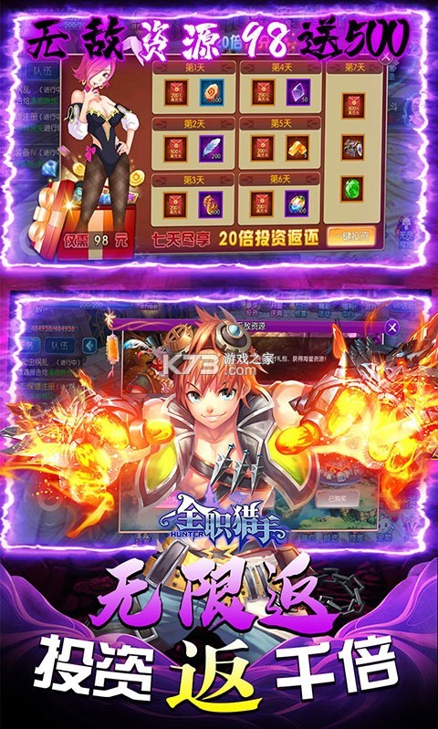4、坠坠变态的无敌资源,统统千倍返利,充98元送500,再送极品红宠-熔核幽龙!