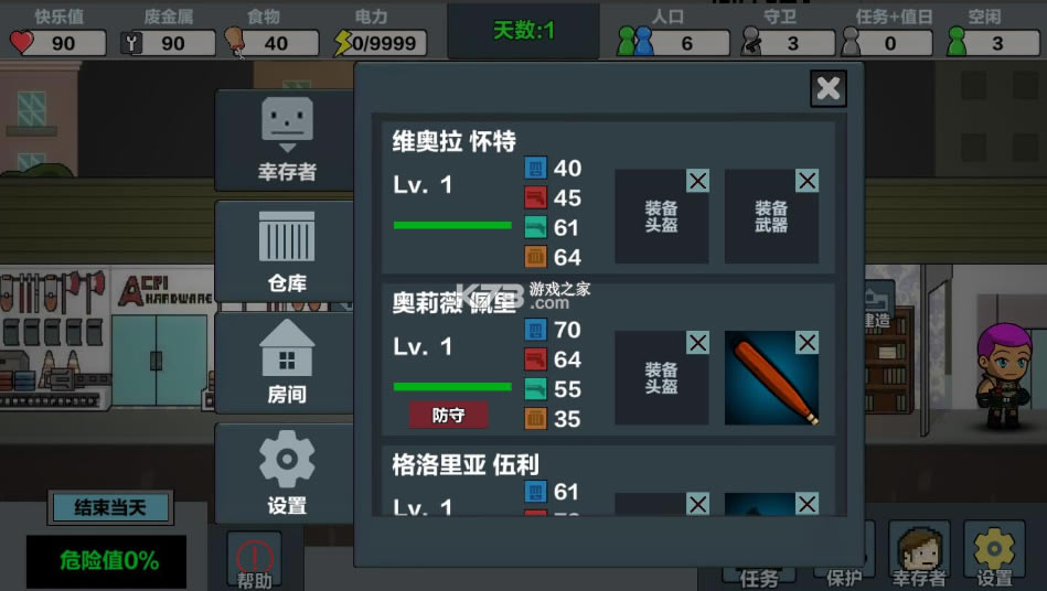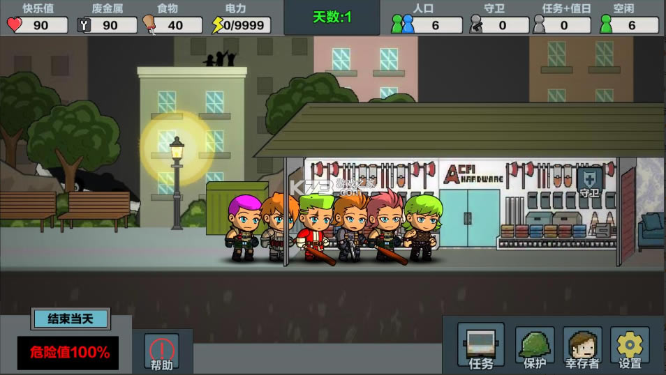 生化病毒爆发,无数的人因此丧生变成了恐怖的僵尸,作为幸存者的你现在将要领导人们进入最后的避难所,然后恰当的组织这些队员,按照能力分派不同的任务,警戒抵御僵尸的进攻,侦查搜寻储备食物、水、武器和其他的幸存者,制造武器和设置陷阱修建防御工事,找到逃离枕头城的方法。