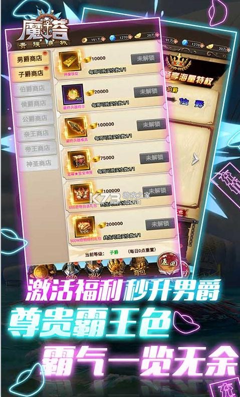 《魔塔》上线送充值,累积登录可累计送千元真充福利,单纯挂机享受海量的元宝,每天上线即可领多人跨服国战开启竞技的魅力,刀刀暴击激活超级多福利,秒升男爵,必爆元宝,称霸海洋的世界,勇闯未来的海洋任意爆,一起来征战。