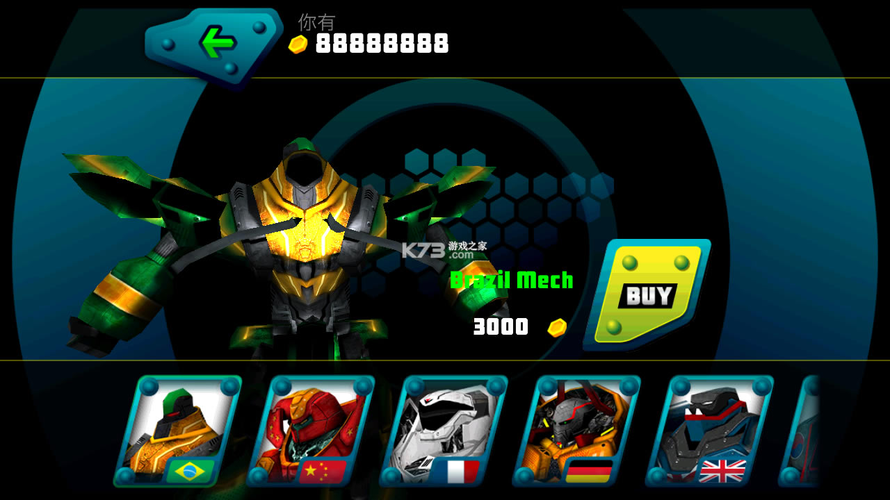 解锁 9 个分别代表美国、英国、南韩、俄国、德国、中国、日本、法国和巴西等 9 个国家的究极威力机甲!