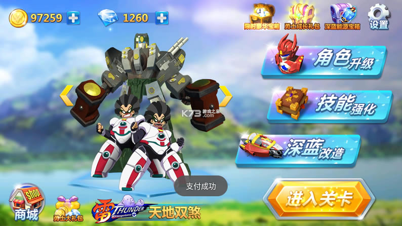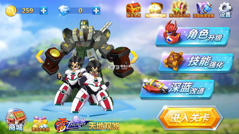 深蓝少年之机甲勇士,玩家在游戏中控制强大的机甲战士,开始刺激的冒险战斗,不同的机甲有着不同的技能,这些技能不仅强大,而且特效也很棒。这是一种使用乐趣,让你真正感受到机甲在战斗中使用的强大力量,展现自己的实力,机甲战斗,华丽的大动作