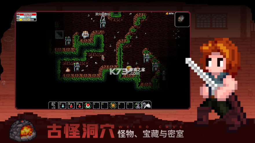 进入古怪的洞穴,寻找源源不断的宝藏,打败不同的怪物,用技能把自己打造成不同的职业,让自己变得更强,走得更深,发现更多的秘密.....记住,及时逃脱才是成功的关键。