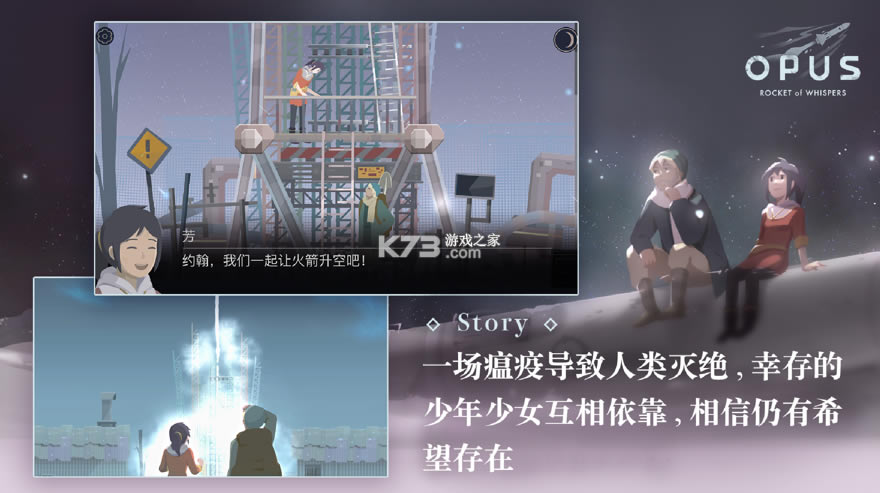 《OPUS灵魂之桥游戏》因为一场瘟疫造成的大范围人类灭亡,仅存的人们末日求生,搜索物资铸造火箭,为故去的人送行,游戏题材新颖,会治愈人们心里的创伤,带着希望生存下去。