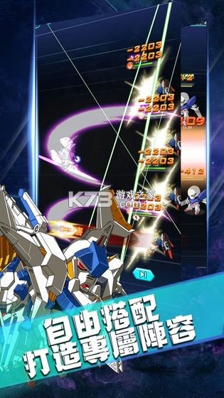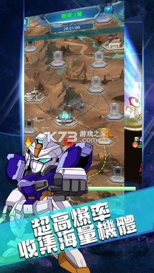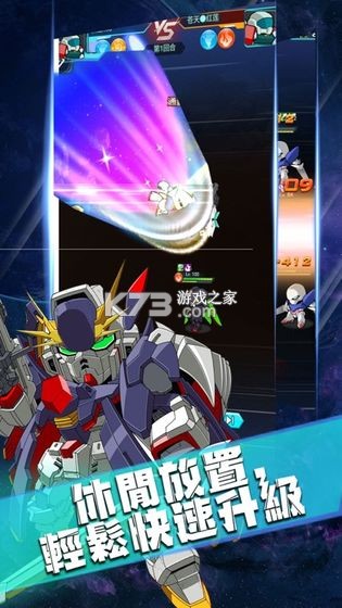 众期待的机甲风格策略放置游戏隆重登场!集结强力的机甲,与数十万玩家一同踏上冒险征程!超级疯狂PK战斗解锁新的机甲英雄,组建最强的科幻团队面对对手的攻击毫不畏惧。勇敢参与这次挑战全力以赴冒险,体验一场非常疯狂的竞技战斗,力量PK寻找最强的机甲战神。历代敢达机体机师大集结。殖民星争夺、星际远征、机师挑战,多种策略玩法,尽力为玩家还原一个真实而经典的敢达世界。每一台主战机体都有独特动作和酷炫大招,配合专属队长技合体技,弹指间逆转战场形势。升级进化,机师培养,打造一个游戏内的强力机动战士部队。游戏有着精致的画面风格,高度还原了敢达的经典。炫酷的打斗场面,附有策略的卡牌玩法,给你带来不一样的游戏乐趣。