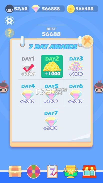 3、关卡模式丰富多样,还可以玩幸运大转盘抽奖获得,赢取更多的金币道具。