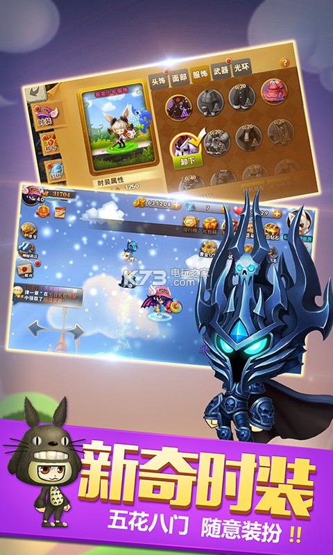 上百精灵宠物与玩家并肩作战,超过50种时装、30种翅膀可供个性装扮。在这里每一个玩家都是独一无二的主角。