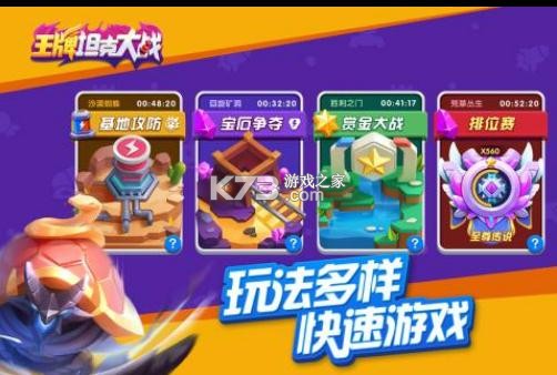 坦克各异,玩法多样,地图丰富,等你来战!3人组队对抗,10人生存,一起进入休闲竞技新时