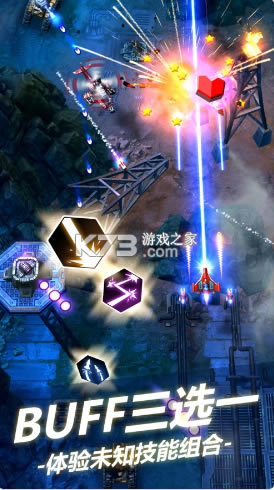 激战、爽快、突袭,击溃,所有的攻击都行云流水,这就是无双战机带来的超级体验。随机三选一的升级功能,让战机的攻击方式在战斗中自由搭配、任意组合,DIY攻击套路让你体会到更多爽快感受。