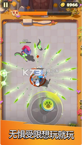 每一次升级都会有随机技能选择,选择更适合自己的闯关方式的技能搭配,会挑战的更加轻松和爽快。