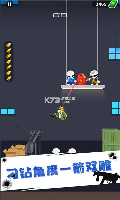《特工47无限金币版》是一款很有趣的休闲类射击闯关游戏,你将在游戏中化身一名职业特工,许多的恐怖分子都是你击杀的对象。在有限的子弹数量之内完成击杀,否则游戏将会失败。卡通风格的画面,简单休闲的玩法,纯物理建模,玩家需要仔细的思索射击的角度,才能够更加轻松的完成击杀,你还可以解锁不同的武器和皮肤哦。