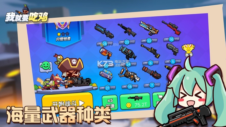 《我要玩吃鸡》这款手游还是很独特的了,吃鸡游戏里面支持使用不同的武器来对战,都是创新型的武器来提供,还有宠物系统,可以带着你的宠物来一起吃鸡,帮助你吃鸡哟。喜欢吃鸡一定要来下载了。