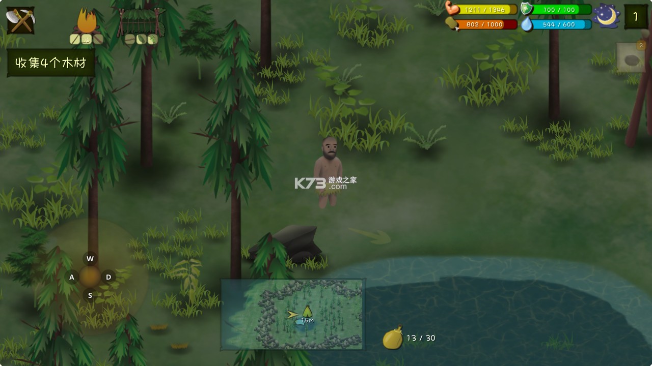 记住营地尽量建在水源旁边,方便喝水。根据工具需要来做采集,比如你之后可能要做一件蓑衣,那就点击左上角看看蓑衣需要哪些材料,做到出门有目的不乱跑。