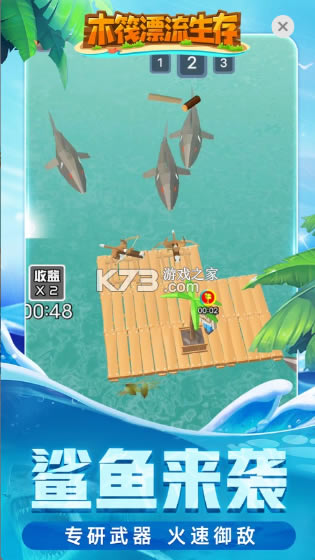 《木筏漂流生存小游戏》是一款利用木筏漂流生存的游戏,收集资源使木筏升级,独立生存下去,还会有鲨鱼袭击,你可以结交动物好朋友帮助你。