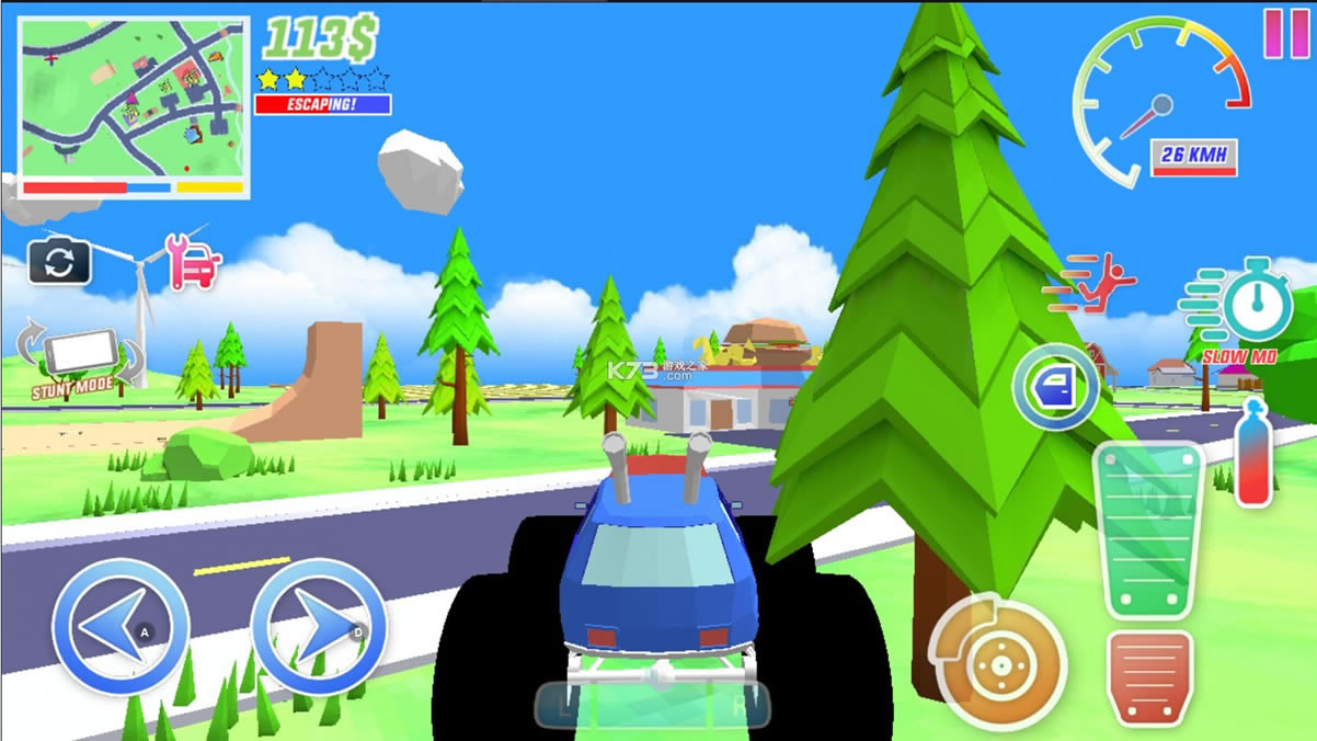 游戏内自由度极高,玩家可以可以自由的收集武器、资源,还可以在各色的地图上进行开车等。