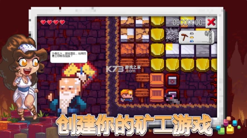 - 从预先准备好的4x4像素方块开始,然后添加平台、陷阱和敌人,丰富你的世界