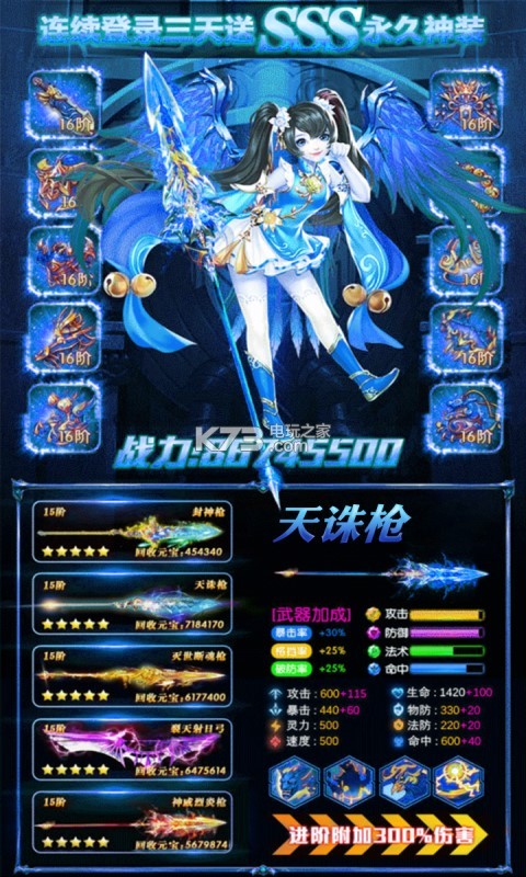 累计充值500元:洗练石*50,五级强化石*10 ,天界圣玉*1