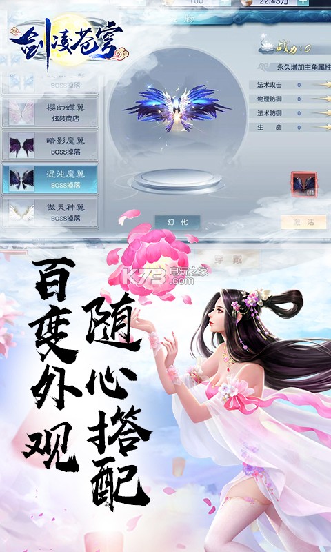 游戏内还可以获得各种炫酷时装坐骑以及翅膀等外观,五大独立的装备系统,创造专属于你的顶级角色人物!
