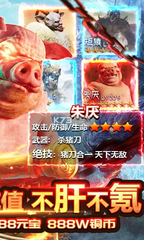 ★上线即送满级VIP18,SVIP 1,88888元宝,888W铜币,助你轻松封神,遨游热血世界!