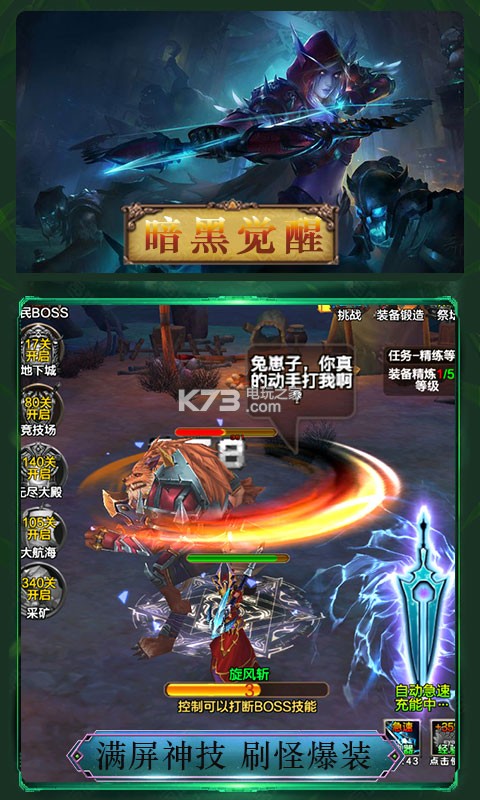 ★传统的MMO成长线,史诗级的世界观,以挂机诠释经典,海量装备任君所取;