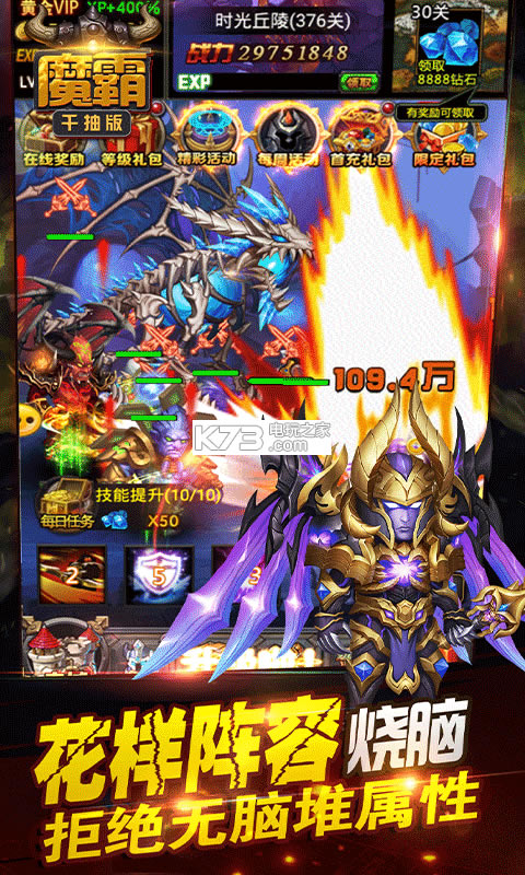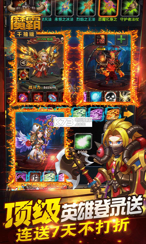 4.开服7天每天登录送顶级英雄,VIP每周领150w钻石,特权商城材料免费买,VIP礼包免费送,东西真的很多;