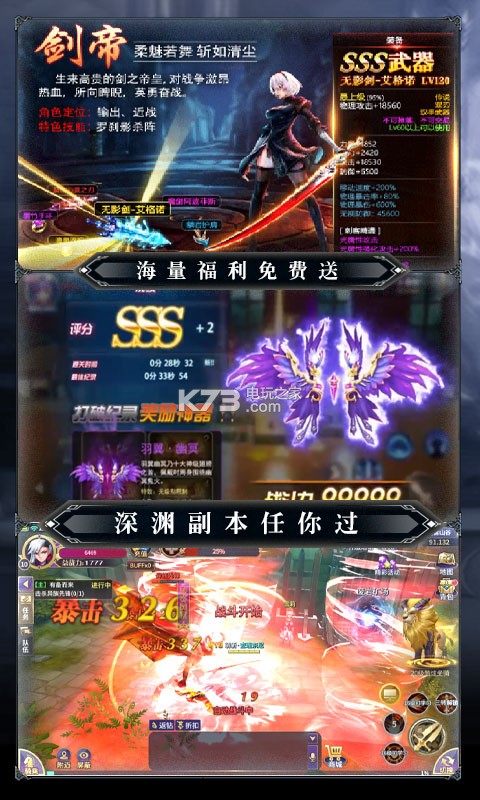 ★首次充值连送3天,1元直送绝版噬黯冥龙、极品华丽翅膀,第二天手持神兵利器开启阵营之争,第三天头顶神级称号争夺国王之位,而后跨服宣战,谁能成为最强王者?