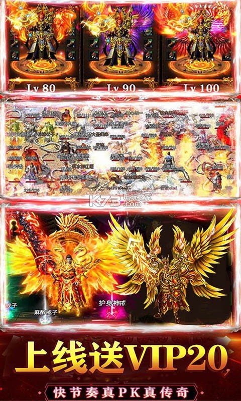 1、上线送 V20、68888元宝、500W金币,黑执士、时空之刃、天使之翼