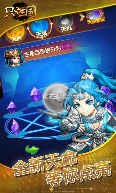 《只爱三国》是一款Q版回合制三国手游,IMAX画质,多种玩法!以经典的三国乱世,群雄争霸为背景,颠覆了原有的三国剧情,充满策略性的回合制战斗玩法让你尽享策略战斗盛宴,精彩不要错过!