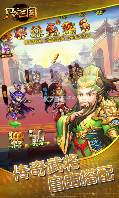 《只爱三国》是一款Q版回合制三国手游,IMAX画质,多种玩法!以经典的三国乱世,群雄争霸为背景,颠覆了原有的三国剧情,充满策略性的回合制战斗玩法让你尽享策略战斗盛宴,精彩不要错过!