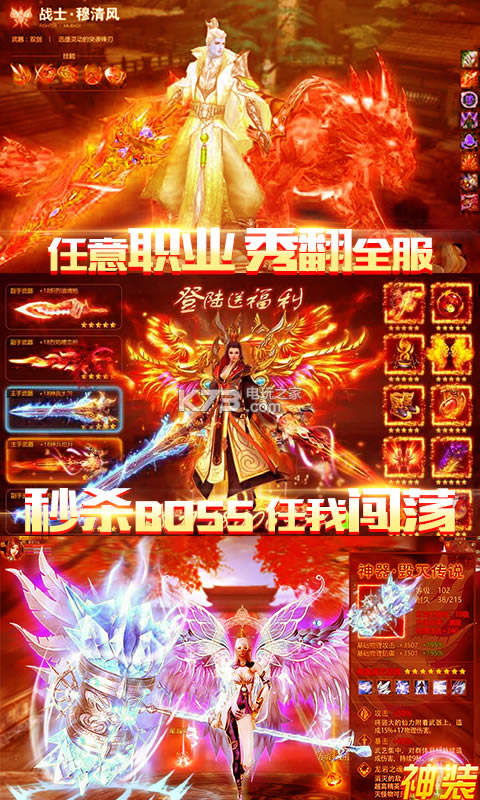 ★策划疯狂暗改,首充10元即送超神橙装武器、60级等级直升丹,14日狂欢,每日登录送出海量金币和毁天神器!
