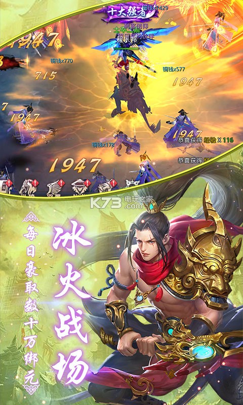 跨服战场,多服高手同台竞技; 冰火战场,号令阵营抢夺哨塔; 群雄帮战,不同帮派守护旗帜。