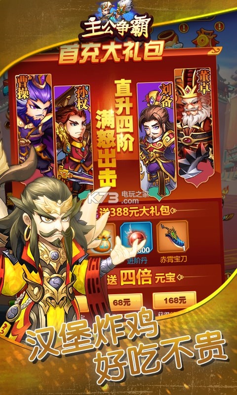 进阶礼包:12品名将碎片*20、进阶丹*300、中级经验书*40