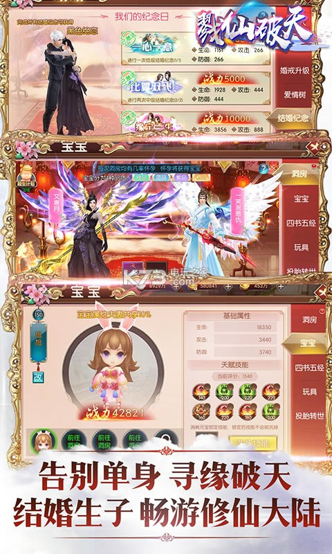 ★不一样的婚姻系统,结婚即送唯美时装,还能生儿育女,培养孩子男女双方都可提升战力。