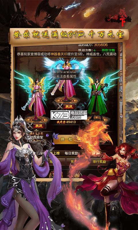 15、登陆福利:大量元宝、大量寻宝券、大量橙装碎片、大量玄珠碎片。