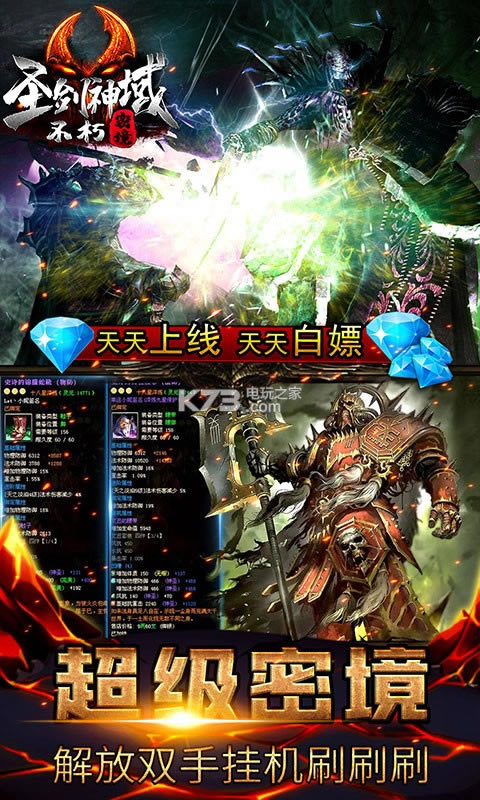 《圣剑神域-千抽版》是一款暗黑风的魔幻动作手游,全面挑战指尖快感,以简洁流畅的操作显著提升游戏体验,并以宠物翅膀、经典副本、打BOSS爆套装等玩法强化游戏内容,更有竞技场、公会、世界boss等惊喜玩法引爆新嗨点,让你真切的置身于游戏世界!游戏采用暗黑写实风格,拥有全面的职业天赋和技能系统,玩家可以根据自己的喜好搭配技能和天赋。玩家可以在这个崭新的暗黑世界中,亲身完成人类的自我救赎,将这混沌乱世重新拉回正常的轨道,也可以组队刷副本、打世界BOSS,争霸跨服!