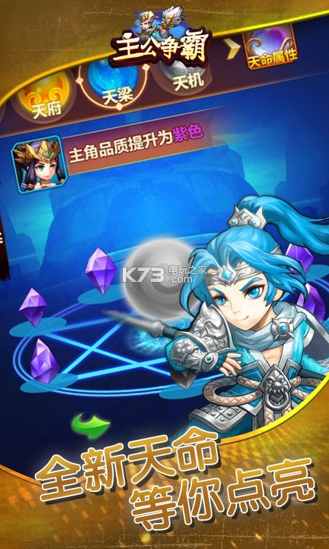 《主公争霸》是一款好玩的三国Q版回合制。精美的游戏场景与可爱三国猛将让玩家大饱眼福。充满策略性的回合制战斗玩法让你尽享策略战斗盛宴。更有多元自由养成,让你可以从方方面面来打造自己心仪的强力武将,还等什么,吕布赵云刘关张在等你。