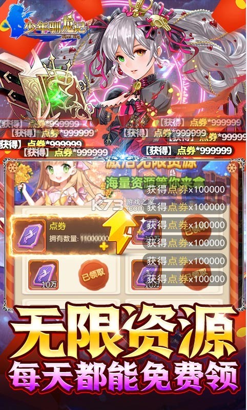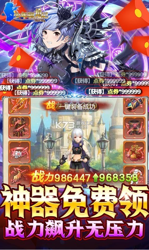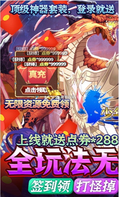 《少年驯龙记满v版》全新的福利版本二次元冒险游戏,累计登录直接赠送神器套装,每日还有免费真充卡领取,日常活动打怪都可以直接爆真充卡,一键挂机全程爬塔,百万点券等你来拿。
