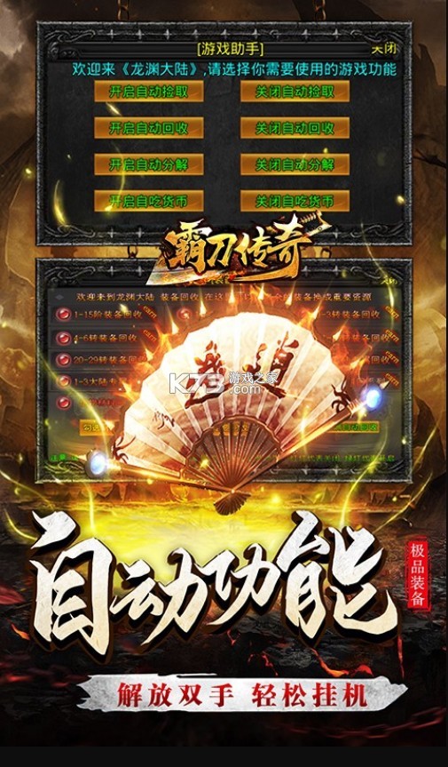 《霸刀传奇打金高爆版》是一款经典复古的传奇世界游戏,全新大陆,超多装备和地图更新,支持玩家一键挂机在线打金,自动战斗解放你的双手,极品装备一键换真充点券,商城道具随意买。