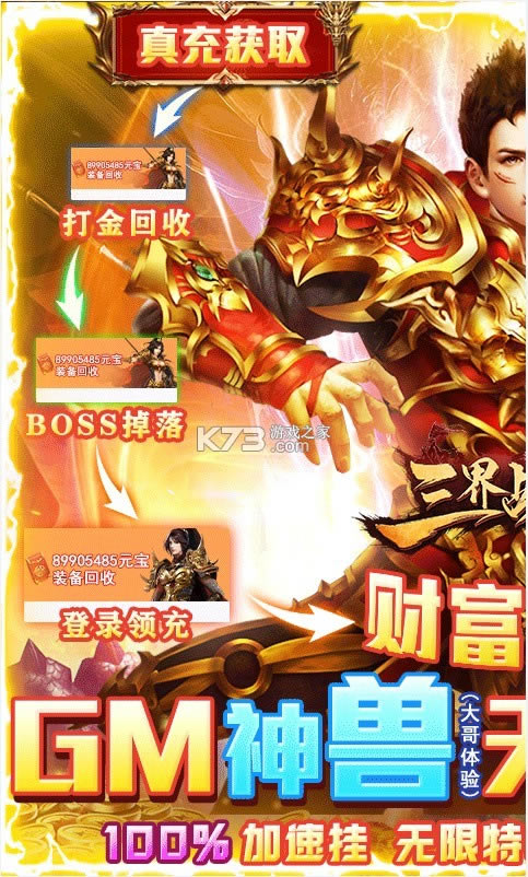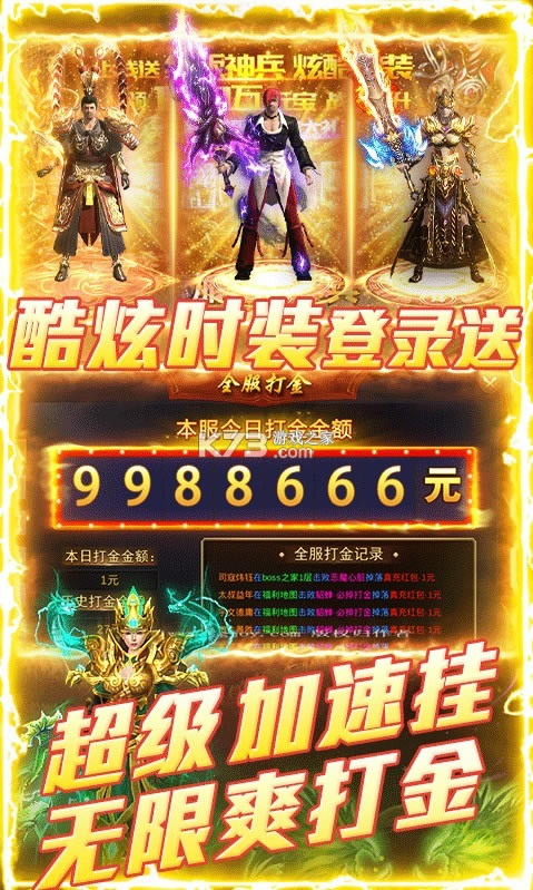 ★后缀说明:游戏自带全局加速,上线再获得100%加速功能体验,每天签到、挂机打BOSS、打金回收可获得大量真充红包
