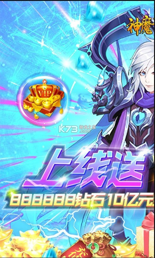 1、上线送VIP13、888888钻石,10亿元宝,绝版称号,道具豪礼。