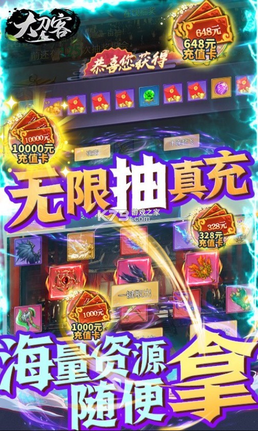 《大刀客返利版》是一款全新的福利武侠类游戏,所有的福利全部真实,上线就送万元充值卡,让你赢在起跑线,游戏内的真充卡能够参与所有付费活动,0氪档也能感受氪金大佬的快感,海量活动福利免费领取。