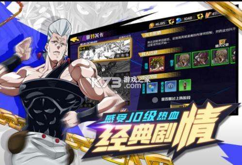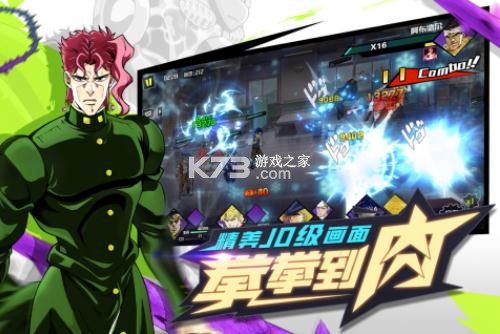 生动经典的剧情,丰富多样的玩法,精美还原的立绘,飒爽炫酷的特效。波纹气功、吸血鬼、柱之男、替身…完美再现的角色与故事场景,在主线故事、飙马野郎、格斗场、试炼中体检热血淋漓的战斗,给Jo厨们带来最原汁原味的黄金体验。