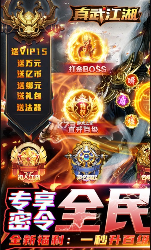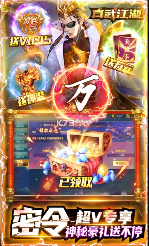 ★上线福利:满级VIP(15)、万元充值卡包、金币*1亿、绑元*77777、超V助力包