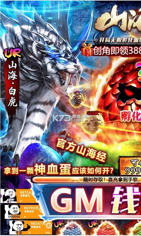福利二、GM血蛋,只需在线,即孵即领,开局无限孵化!一直在线一直孵,满屏异兽,首孵必出UR或SSSR!