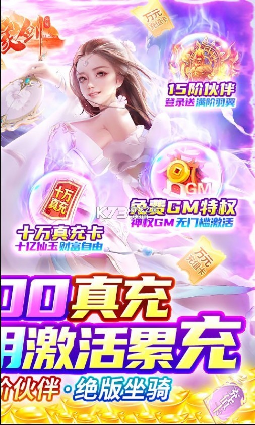 《仙缘剑爆真充版》让你能够不花钱来体验到氪金大佬的感觉,全新的仙缘大世界,炼制法宝来走上修仙之路,首日在线就送极品伙伴和15阶坐骑,上线还有专属的GM礼包,海量钻石免费获取。