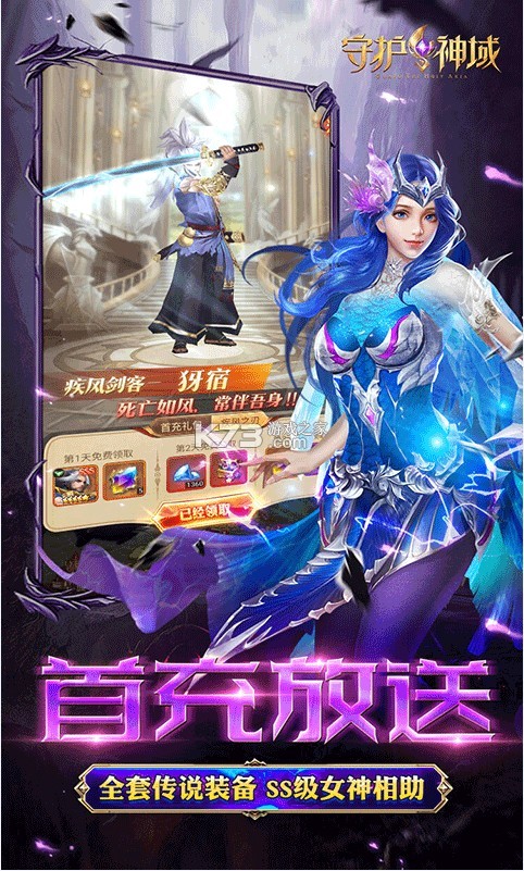 2.首充三天豪礼,送SS女神、全套传说装备,更可获得3S疾风剑客