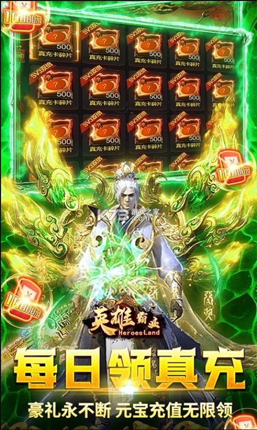 1、上线送vip15,元宝*8888,金币*10000万、绝版武圣战神时装套!