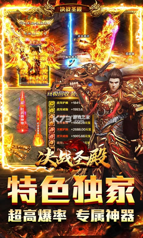 《决战圣殿》搭载复古的传奇手游,万人奋战上百地图精彩的打造,炫酷的外观和华丽的羽翼,装备全靠打,0氪金也能玩的更加的爽快,超快的攻速,打造全新的体验感,超高爆率全新版本,决战经典打造,全新爆率独特的boss领取专属神器。
