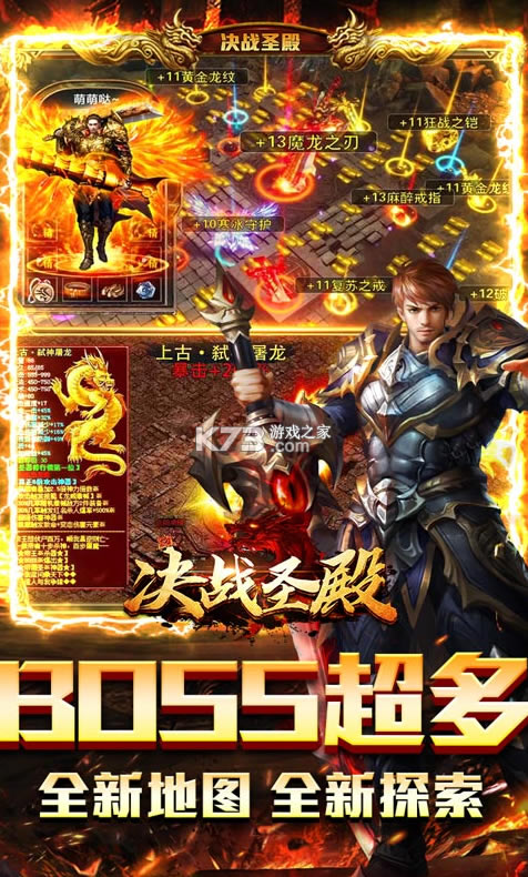 游戏内设独特boss系统,和兄弟一起打boss,体验超高爆率、疯狂收割的快感,让你不再为装备和资源发愁!战宠随行,助你征战每一场PK。海量战宠搭配多种属性技能,在游戏中拥有一个强大的助手,一呼百应,让你专注每场战斗!