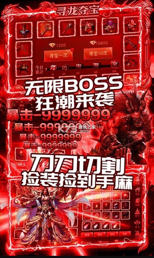 明星代言,一刀满级立即加入激情热血传奇之战等你加入,高爆率,多装备,丰富材料,上线就能获得每场战斗让你爽,变态神装免费得,多样神技随心学习,野外地图畅爽对决,创世神装副本获取,一键在线体系收回,体验各种激情与快感,拥有超高的网上好评,没有卡顿、运行流畅稳定,自动提示各种武器的使用和关卡的介绍,还在担心没有装备?在这里随时随地掉装备,只有你想不到,没有你爆不了,好友组队更轻松,想要快速升级?副本可少不了,组队还可以减少闯关难度哦,这款游戏能够爆出超多的顶级神装,让你火封神之名呢!游戏拥有着上百道酷炫刺激的副本,每一道副本关卡都对应着专属的装备,只要你肯耐心跟团打本就能问鼎玛法,驰骋逍遥,将那些梦寐以求的神装全都据为己有呢。